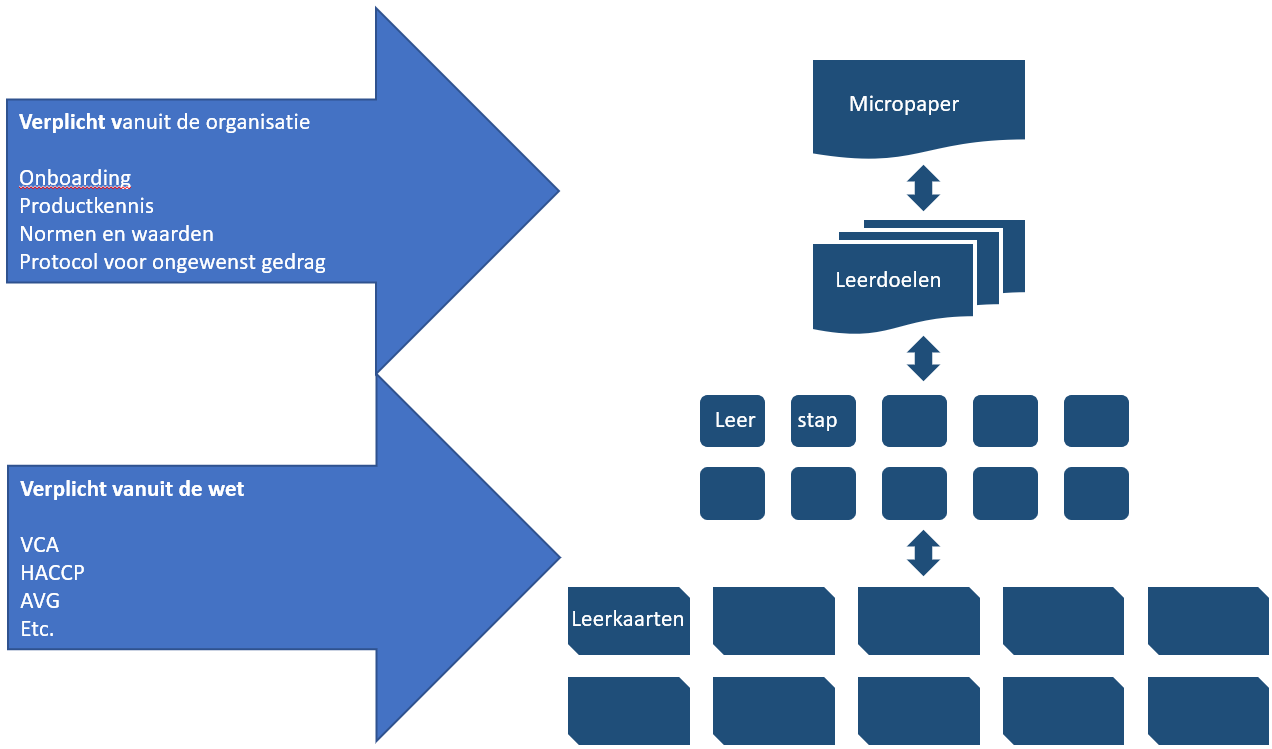 We weten uit ervaring dat veel vacatures echte ‘hands-on’ jobs zijn. Gewoon het praktisch invullen van de organisatiewens om interne werkinstructies, onboarding trainingen, veiligheid, AVG, protocollen voor ongewenst gedrag etc. op de rit te krijgen. Snel, maar wel didactisch juist. Er is dus veel vraag naar kennis op zowel tactisch als operationeel niveau.